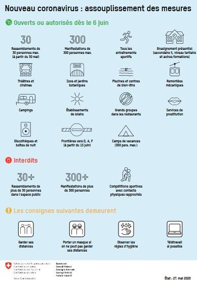 Suite à la déclaration du Conseil Fédéral du 27 mai 2020, il faut retenir 2 dates mais le site du GTE résume les informations essentielles pour en savoir plus : lien vers le site du GTE